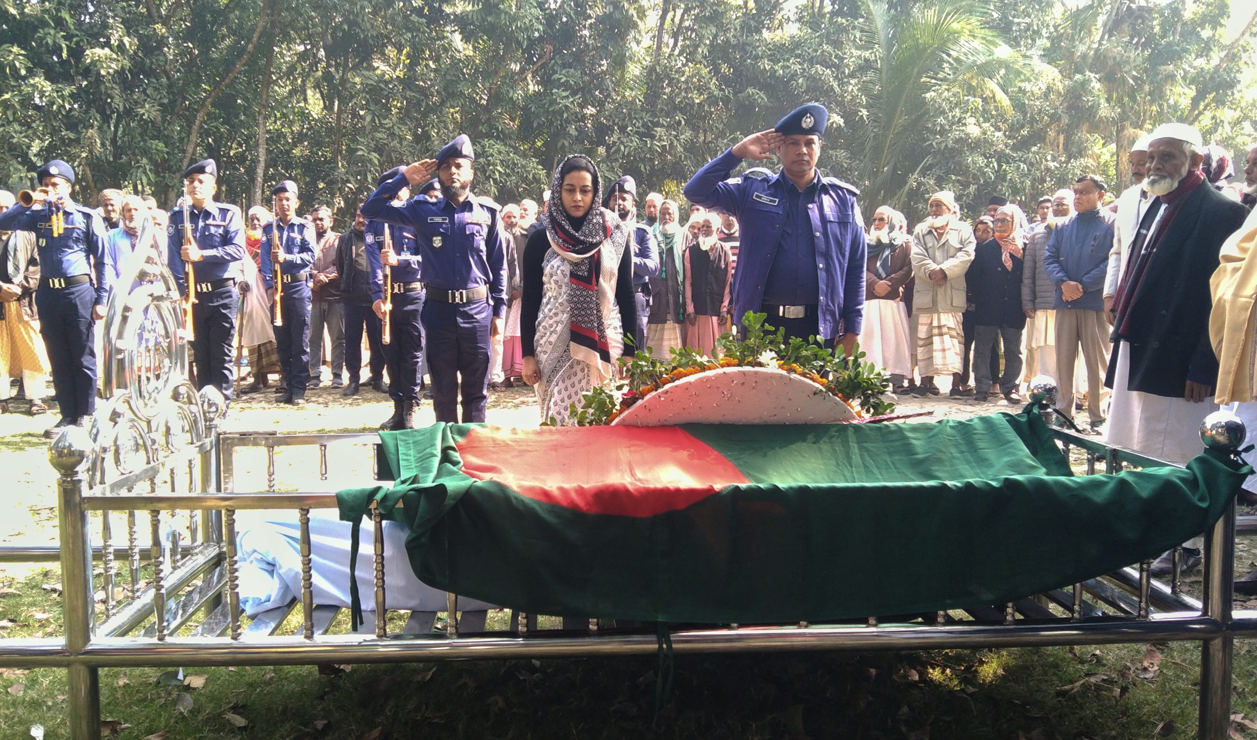 ৮ জানুয়ারি বৃহস্পতিবার সকাল সাড়ে এগারোটার সময় গার্ড অব অনার প্রদান শেষে হাজীপাড়া গোরস্থানে তার দাফন সম্পন্ন করা হয়েছে।