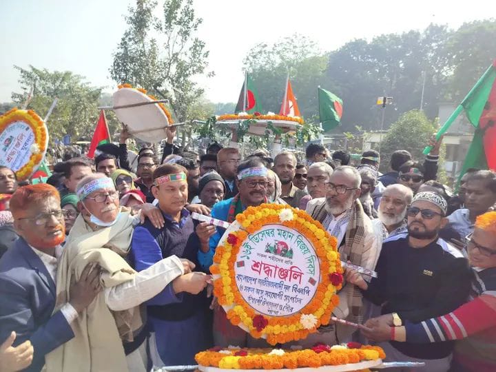 পাবনার ঈশ্বরদীতে যথাযোগ্য মর্যাদা, গভীর শ্রদ্ধা ও উৎসাহ উদ্দীপনার মধ্য দিয়ে ১৬ ডিসেম্বর মহান বিজয় দিবসটি উদযাপন করা হয়েছে। মঙ্গলবার (১৬ ডিসেম্বর) ভোর থেকেই মহান মুক্তিযুদ্ধে শহীদ বীরদের প্রতি শ্রদ্ধা জানাতে ফুলে ফুলে ভরে উঠেছে ঈশ্বরদী আলহাজ্ব মোড়স্থ স্মৃতিস্তম্ভ। ভোরে সূর্যোদয়ের সঙ্গে সঙ্গে তোপ ধ্বনির মাধ্যমে মহান বিজয় দিবসের শুভ সূচনা করা হয়।