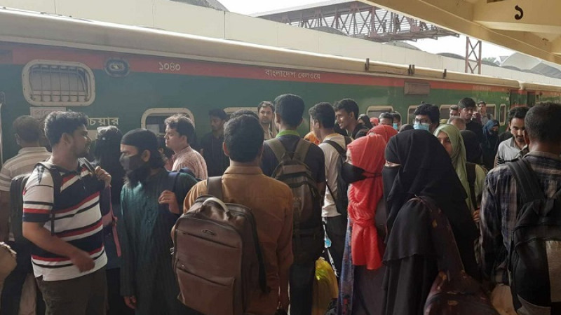 কমলাপুরে ঘরমুখো মানুষের ভিড়, নির্ধারিত সময়ে ছাড়ছে ট্রেন