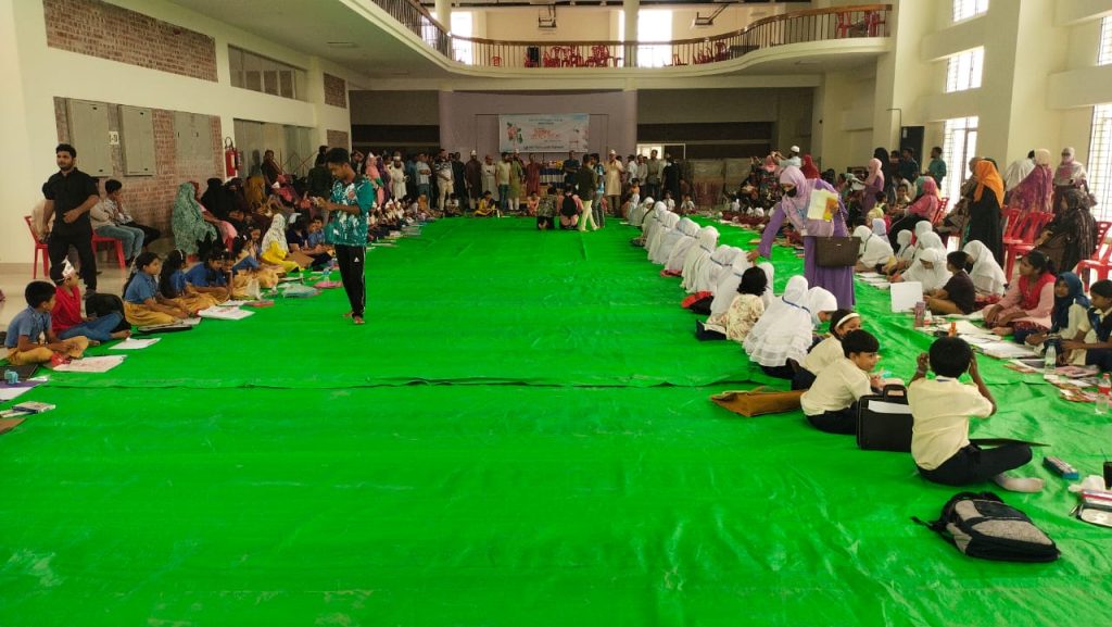 শিশুদের চোখে ‘জুলাই গণঅভ্যুত্থান’: চিত্রাঙ্কনে ফুটে উঠল সাহস ও স্বপ্ন। সকাল ১১টায় বিশ্ববিদ্যালয়ের কনভেনশন হলে অনুষ্ঠিত হয় শিশু চিত্রাঙ্কন প্রতিযোগিতা। ‘জুলাই গণঅভ্যুত্থান’ বিষয়কে কেন্দ্র করে প্রথম থেকে পঞ্চম শ্রেণির শিক্ষার্থীরা তাদের রঙ তুলিতে তুলে ধরে গণতন্ত্রের বর্ণিল স্বপ্ন। পর্যবেক্ষক শিক্ষকরা বলেন, “ছোটদের তুলিতে বড় বার্তা—এটা শুধুই প্রতিযোগিতা নয়, ভবিষ্যতের সচেতন নাগরিক তৈরির পথচলা।”
