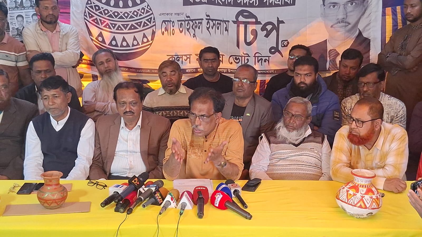 শনিবার (৭ ফেব্রুয়ারি ২০২৬) লালপুরের ওয়ালিয়ায় বাজারে কলস প্রতীকের নির্বাচনী কার্যালয়ে আয়োজিত এক সাংবাদিক সম্মেলনে তিনি এসব অভিযোগ করেন।