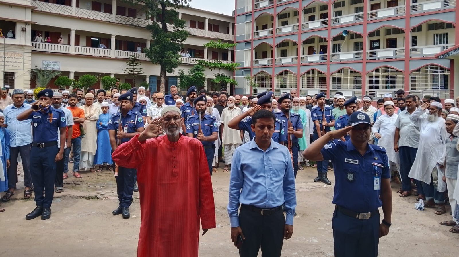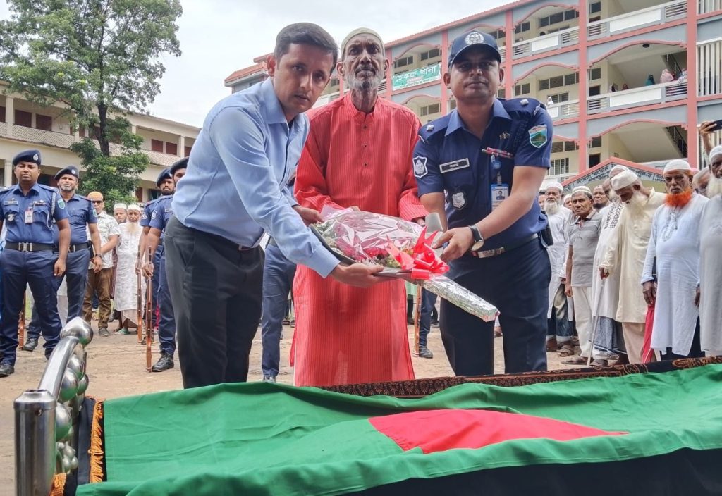 আজ সোমবার (৭ জুলাই) বাদ জোহর পাবনা আলিয়া মাদ্রাসা মাঠে তাঁকে রাষ্ট্রীয় মর্যাদা প্রদান করা হয়। পাবনা সদর উপজেলা নির্বাহী কর্মকর্তা (ইউএনও) মো. নাহারুল ইসলামের উপস্থিতিতে সদর থানার ওসি (তদন্ত) সঞ্জয় কুমারের নেতৃত্বে পুলিশের একটি দল তাঁকে গার্ড অব অনার প্রদান করে।