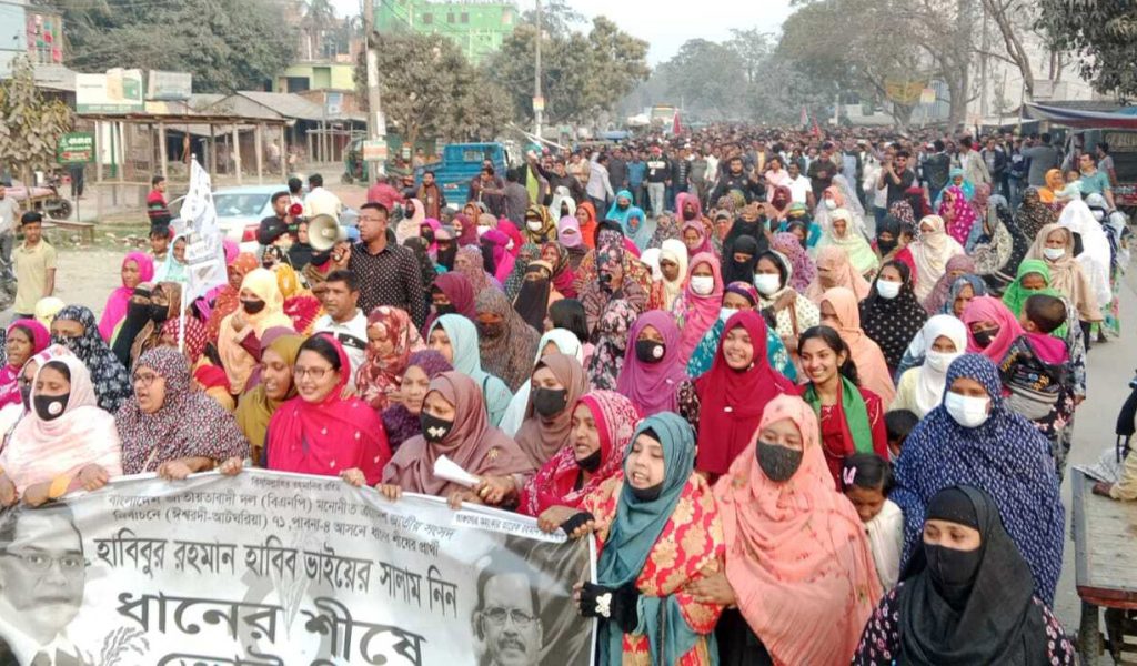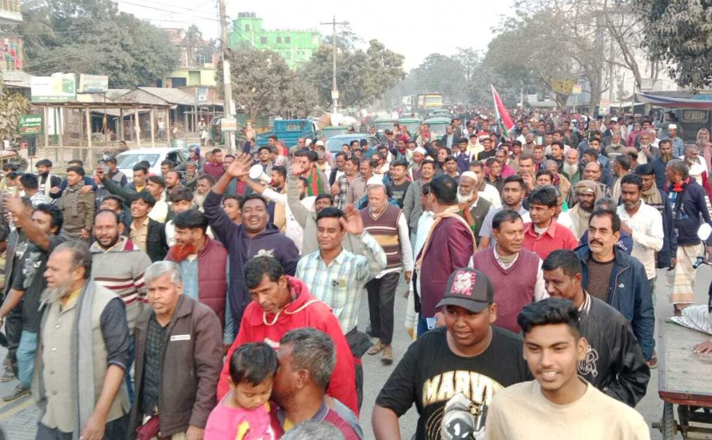 সোমবার (৯ ফেব্রুয়ারি) বিকেলে ঈশ্বরদী উপজেলার দাশুড়িয়া এলাকায় বিএনপি প্রার্থী হাবিবুর রহমান হাবিবের ধানের শীষ প্রতীকের নির্বাচন পরিচালনা কমিটির সদস্য সচিব, রাজশাহী বিশ্ববিদ্যালয়ের সাবেক ছাত্রনেতা ও দাশুড়িয়া ইউনিয়নের সাবেক চেয়ারম্যান শরিফুল ইসলাম তুহিনের নেতৃত্বে এ মিছিল অনুষ্ঠিত হয়। মিছিল শেষে আয়োজিত পথসভায় বক্তব্য রাখতে গিয়ে তিনি বলেন, “পাবনা-৪ আসনে ধানের শীষের পক্ষে গণজোয়ার সৃষ্টি হয়েছে। আগামী ১২ ফেব্রুয়ারি আমাদের বিজয় হবেই হবে, ইনশাল্লাহ।”