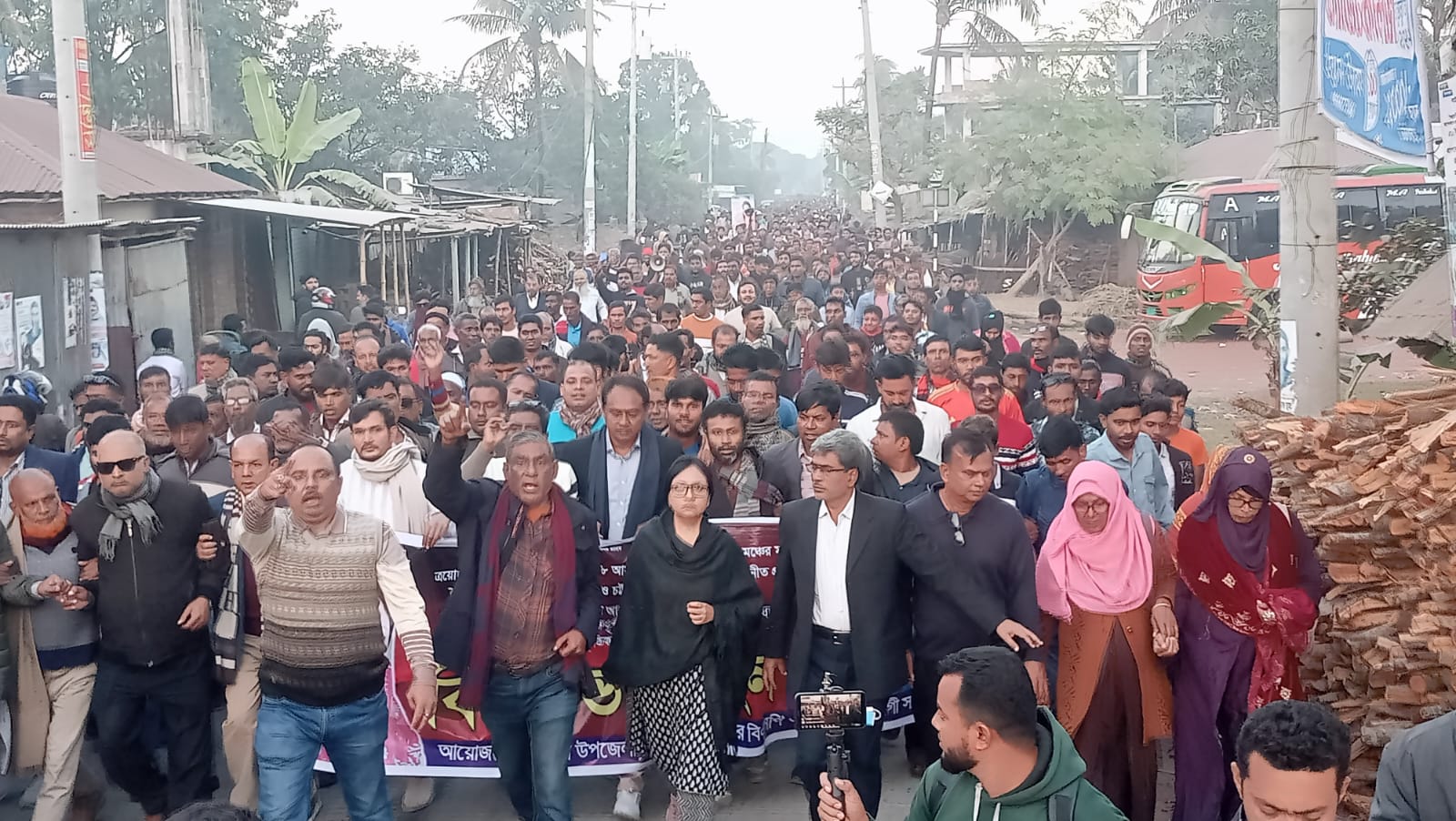 ইনকিলাব মঞ্চের মুখপাত্র ও ঢাকা-৮ আসনের স্বতন্ত্র প্রার্থী ওসমান হাদী এবং চট্টগ্রাম-৮ আসনের বিএনপি মনোনীত প্রার্থী এরশাদ উল্লাহ’র উপর গুলির প্রতিবাদে বিক্ষোভ মিছিল করেছে লালপুর উপজেলা বিএনপি।