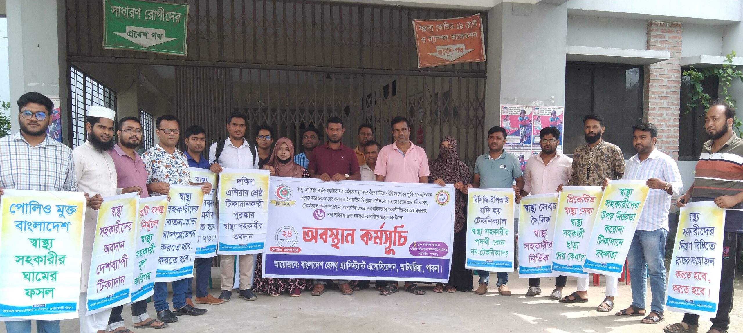 প্রস্তাবিত ছয় দফা দাবি বাস্তবায়নের লক্ষ্যে ২ ঘন্টা কর্মবিরতি পালনকালে হেলথ্ অ্যাসিস্ট্যান্ট এসোসিয়েশন এর আটঘরিয়া উপজেলা শাখার সভাপতি মোঃ আশরাফুল ইসলাম বলেন, নির্বাহী আদেশে নিয়োগবিধি সংশোধন শিক্ষাগত যোগ্যতা স্নাতক/ সমমান করে ১৪তম গ্রেড প্রদান,