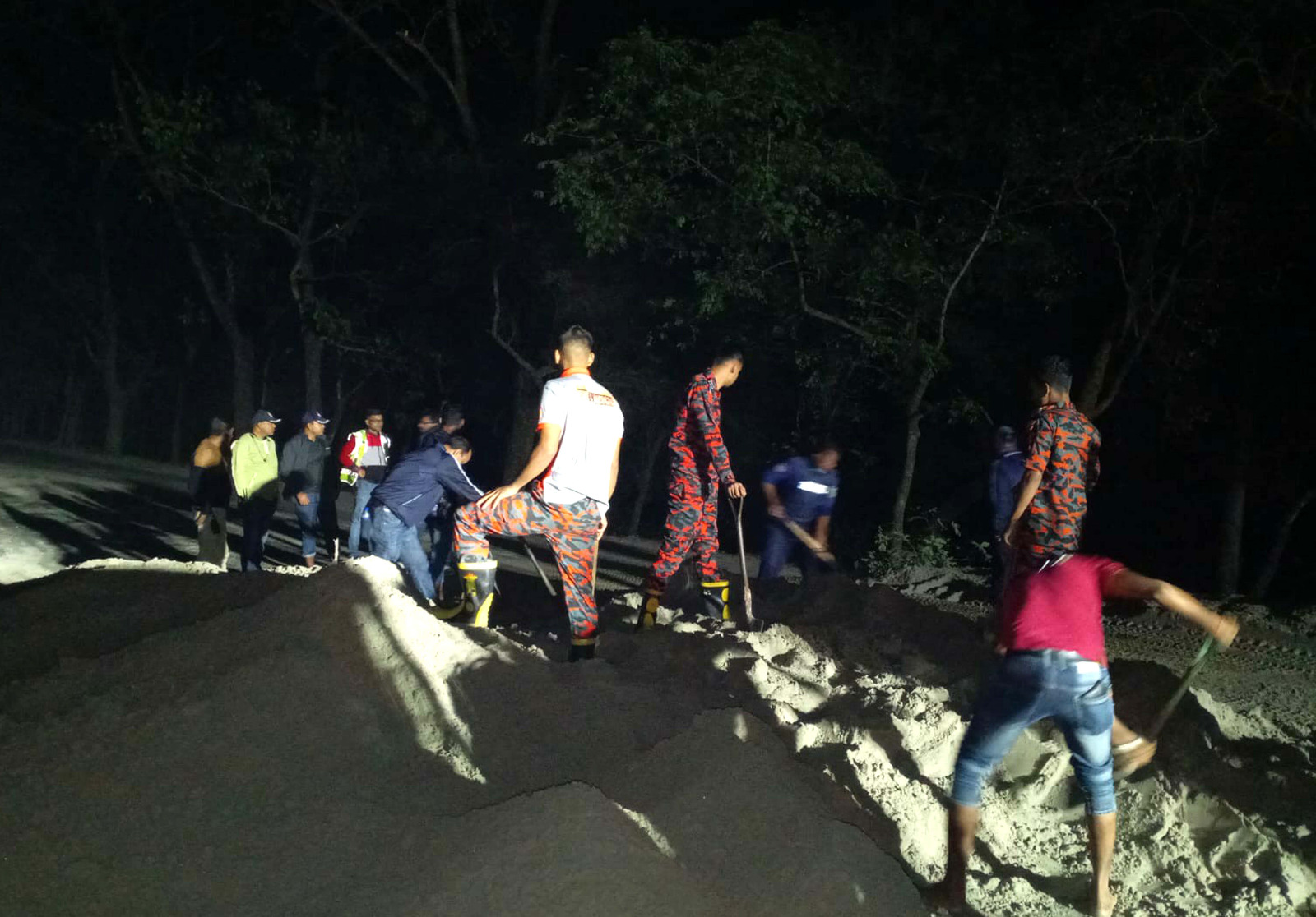 রূপপুর মডার্ন ফায়ার সার্ভিসের ফায়ার ফাইটার রাকিব বিশ্বাস বলেন, “রাত প্রায় পৌনে তিনটার দিকে আমরা খবর পাই। পুলিশ ও প্রশাসনের সহায়তায় মহাসড়ক থেকে বালু অপসারণে দুই ঘণ্টারও বেশি সময় লাগে।”