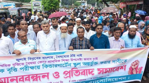প্রাথমিক বৃত্তি পরীক্ষায় অংশগ্রহনের দাবীতে ঈশ্বরদীতে মানববন্ধন ও স্মারকলীপি প্রদান