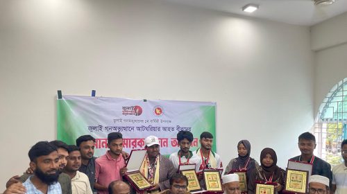 আটঘরিয়ায় জুলাই গণঅভ্যূত্থানে আহত বীরদের সম্মাননা স্মারক প্রদান অনুষ্ঠিত