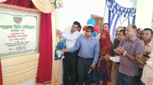 ভিডিও কনফারেন্সের মাধ্যমে আটঘরিয়ায মিনি স্টেডিয়াম উদ্ধোধন