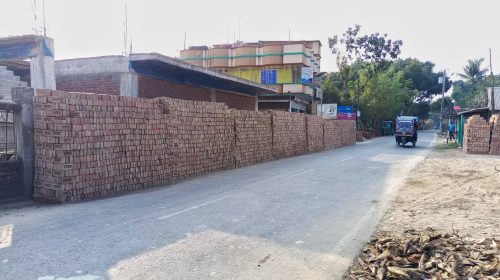 আটঘরিয়ার পুস্তিগাছা বাজার সংলগ্ন পাকা রাস্তা দখল করে ইটের রমরমা ব্যবসা