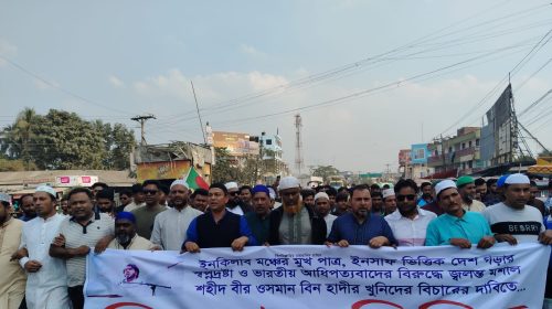 ওসমান হাদির হত্যাকারীদের বিচারের দাবিতে লালপুর বিক্ষোভ মিছিল