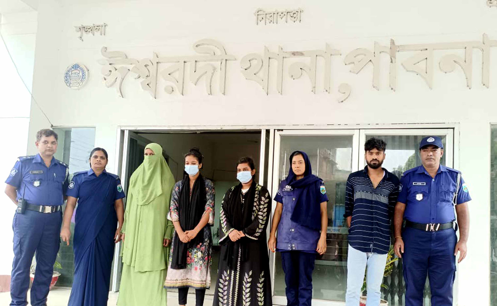 মঙ্গলবার (১৭ জুন) রাতে উপজেলার লক্ষীকুন্ডা ইউনিয়নের বিলকেদার এলাকা থেকে লোকজনের সহায়তায় পুলিশ তাদের আটক করেন। আটককৃতরা হলেন, ঈশ্বরদী থানার লক্ষীকুন্ডা ইউনিয়নের কৈকুন্ডা গ্রামের মৃত আজাহার সরদারের ছেলে সুমন সরদার (২৬), কুষ্টিয়ার দৌলতপুর থানার আদাবাড়ীয়া গ্রামের আব্দুল খালেকের মেয়ে মোছাঃ সুখি খাতুন (১৮), নাটোরের লালপুর থানার বালিতিতা (ইসলামপুর) এলাকার সাহু বিশ্বাসের মেয়ে তনিমা আক্তার তমা (২১) ও একই এলাকার আব্দুর রশিদের মেয়ে আখি খাতুন (২০)।