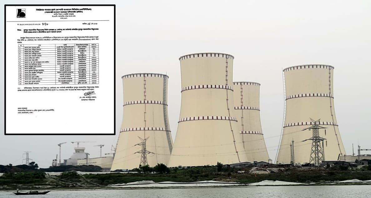 নিউক্লিয়ার পাওয়ার প্লান্ট কোম্পানি বাংলাদেশ লিমিটেড (এনপিসিবিএল) এর ০৮ মে ২০২৫ ইং তারিখে স্মরক নং ৩৯.১০.০০০০. ১০২.২৭.০০১.১৯-৪৭১ তে ব্যবস্থাপনা পরিচালক ড. জাহেদুল হাছান এর স্বাক্ষরিত এক বিজ্ঞপ্তিতে ১৮ জন কর্মকর্তা-কর্মচারীকে রপপুর পারমানবিক বিদ্যুৎ কেন্দ্রে নির্মাণ প্রকল্প এলাকা ও গ্রীণসিটিতে প্রবেশ চিঠি ইস্যুর ৭২ ঘন্টা পর হইতে বন্ধের নিদের্শ দেওয়া হয়েছে।